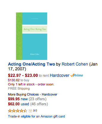 Acting One. The book is getting hardier to find, although Amazon has copies. The current version also includes his text